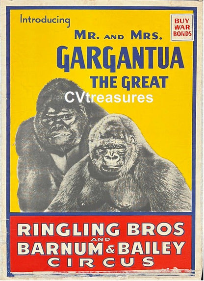 Vintage Circus Poster GARGANTUA THE GREAT Ringling Brothers Barnum Bailey 1941