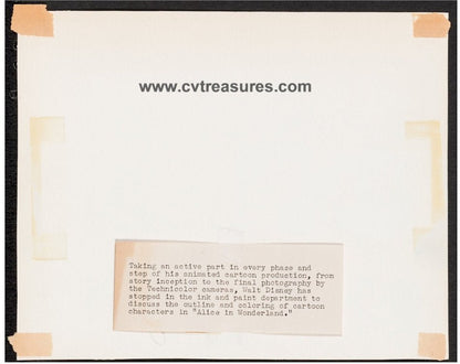 Stunning vintage TYPE I Walt Disney Behind-the-Scenes Photo in the making of his 1951 masterpiece, "Alice in Wonderland". From a recent Walt Disney discovery of six vintage photos, These are truly very rare historic behind-the-scenes photos which we have never seen before and are most likely the only ones that exist.
