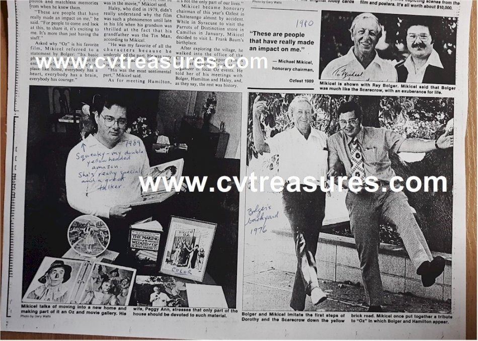 Note: We have Two OZ Signed photos that came from him and were inscribed to him. Of the several photos he had Haley and Bolger Autograph and the many I acquired from him, Haley and Bolger would often add very personal Oz related inscriptions to "Mike"..