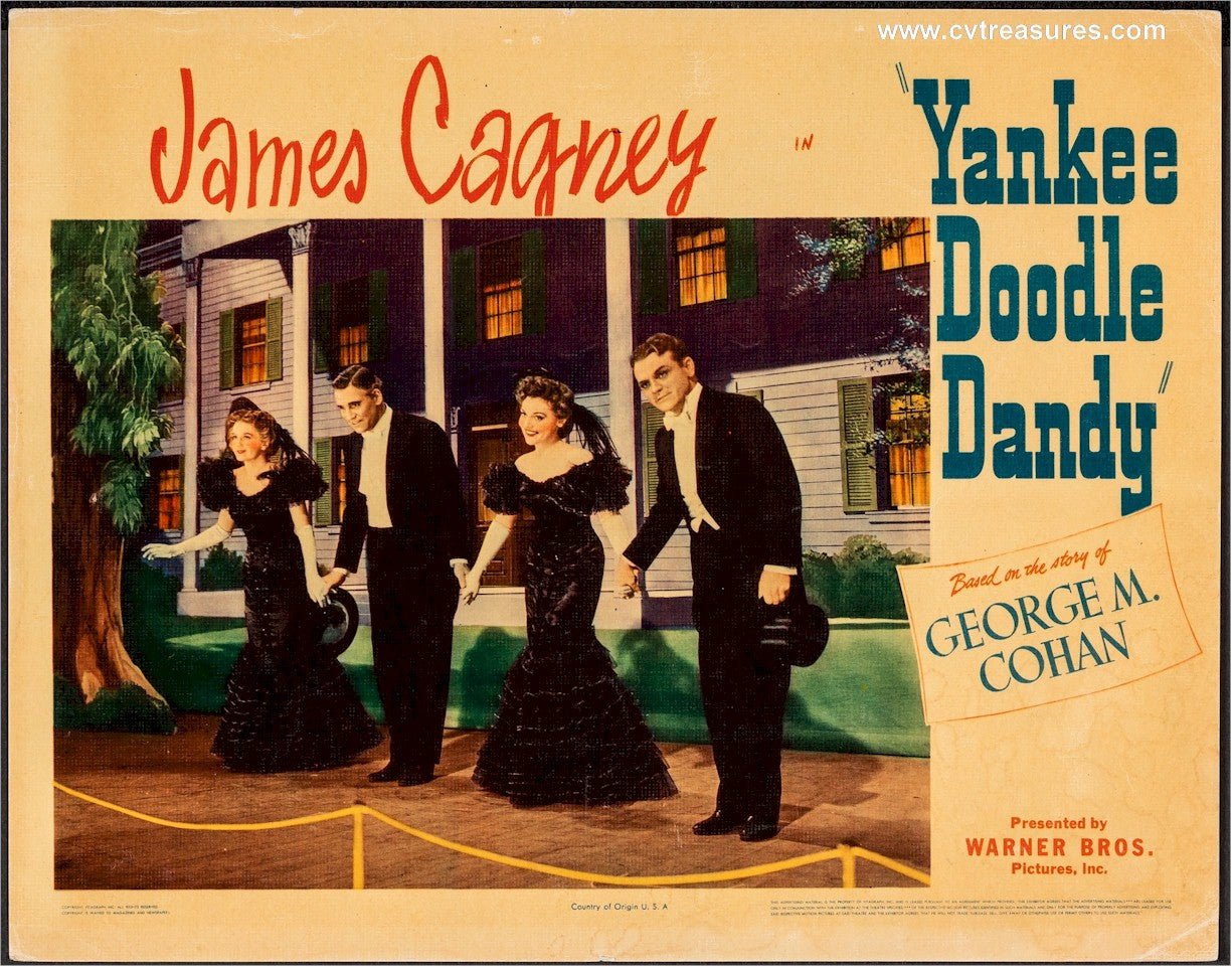 A rare and beautiful original vintage lobby card from the 1942 Cagney classic "Yankee Doodle Dandy". WWII era card is made of the rare linen sometimes used in the 30's and early 40's.